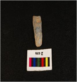 | Description / विवरण | Parallel sided microlith blade with use wear marks on cutting edges, prominent ridge on dorsal side, bulb on ventral and triangular section. |