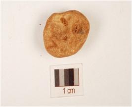 | Description / विवरण | A small pebble made on quartzite stone, uneven shaped and rough surface. |