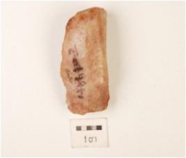 | Description / विवरण | A core made on chert, flake scars and ridges on both side contex on one side, ovate section and blunt cutting edge. |