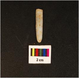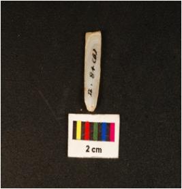 | Description / विवरण | Parallel sided microlithic blade with use wear marks on cutting edges and double ridge on dorsal. Trapezoid in section and diffused bulb on proximal end. |