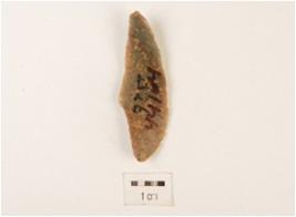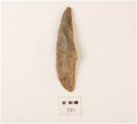 | Description / विवरण | A flake made on chert, flake scars on dorsal side sharp cutting edge and plano-convex section. |