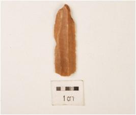 | Description / विवरण | A flake made on chert, flake scars on dorsal side 2 ridge on dorsal, broken on proximal end and bulb is diffussed. |