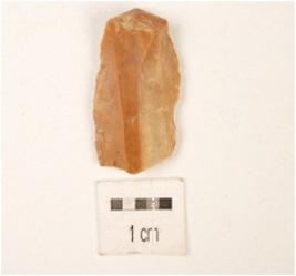 | Description / विवरण | Fragment of chert blade ridges on dorsal use wear marks and bulb diffussed bulb. |
