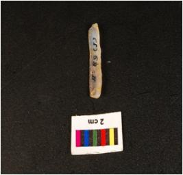 | Description / विवरण | Parallel side microlithic blade with double ridge on dorsal , trapezoidal in section, broken from distal end and use wear mark along the cutting edges. |