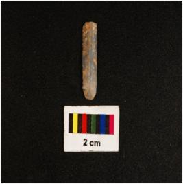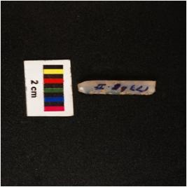 | Description / विवरण | Parallel sided microlithic blade with mid ridge on dorsal. Diffused bulb on ventral triangular in section. Use wear marks on cutting edges and broken at distal end. |