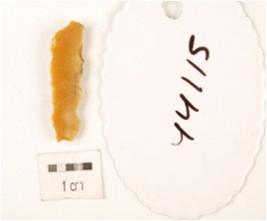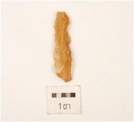| Description / विवरण | Fragment of chert blade bulb is difussed, ridge on dorsal side, triangular section and use wear marks. |