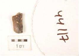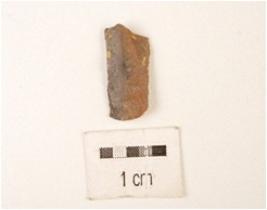 | Description / विवरण | Fragment of chert blade triangular section, use-wear marks, bulb on ventral and ridge on dorsal side. |