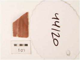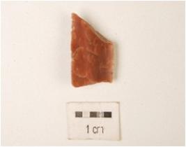 | Description / विवरण | Fragment of chert object, use wear marks, one ridge on dorsal side and triangular section. |