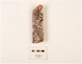 | Description / विवरण | Fragment of chert blade triangular section, use-wear marks and two ridge on dorsal side. |