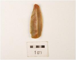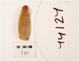 | Description / विवरण | Fragment of chert blade one ridge on dorsal side triangular section, use wear marks and prepared platform. |