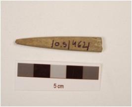 | Description / विवरण | Stone point, with a rectangular cross section, pointed end other end broken and polished surface. |
