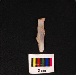 | Description / विवरण | A chalcedony blade with a single ridge on dorsal side, diffused bulb on ventral prepared platform and distal end broken. |