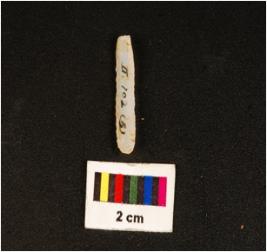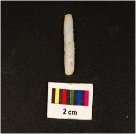 | Description / विवरण | Parallel sided chalcedony blade, mid- ridge on dorsal, flat ventral and use wear edges. |