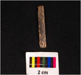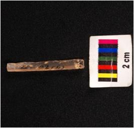 | Description / विवरण | A parallel sided blade, made of chalcedony with a ridge on the dorsal side use-ware marks on the cutting edges and triangular in section. |