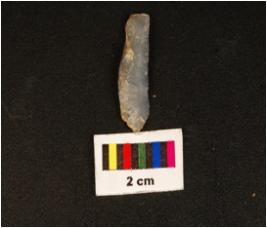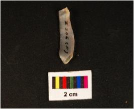 | Description / विवरण | Parallel sided chalcedony blade, mid-ridge on dorsal, flat ventral and use wear edges. |