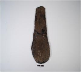 | Description / विवरण | Iron wedge, on side is broad and another thick, rusted surface and chemicaly treated. |