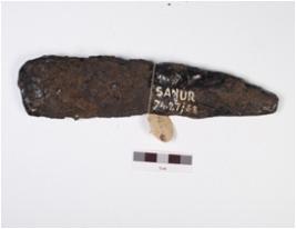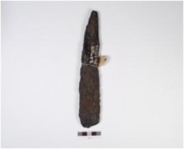 | Description / विवरण | Iron chisel, badly rusted, one side is broad but another is pointed, rough surface and chemicaly treated. |