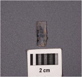 | Description / विवरण | Fragment of a blade with intact distal end and partly broken proximal end, use-wear marks along the cutting edge. |