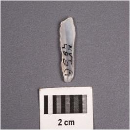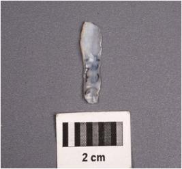 | Description / विवरण | A chalcedony blade with two ridges on dorsal surface, duffused and use-wear marks along the cutting edges. |