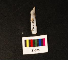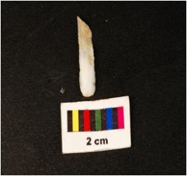 | Description / विवरण | Parallel sided microlithic blade with three ridges on dorsal side, diffused bulb on ventral broken along distal end and use wear marks on cutting edges. |