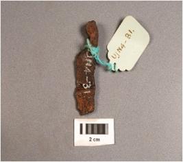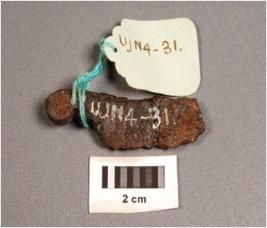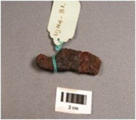 | Description / विवरण | Iron object with one end broken, handle on one end curver on end of handle, corroded surface. |