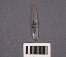 | Description / विवरण | A parallel sided blade with two ridges on dorsal surface, prepared platform, diffused bulb on ventral surface, use-wear marks along cutting edges. |