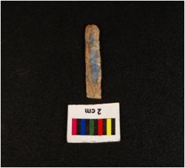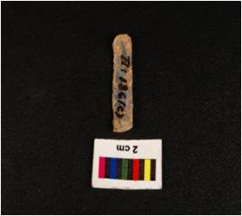 | Description / विवरण | Parallel sided microlith blade with two ridges on dorsal use wear marks on cutting edges, diffused bulb on ventral and trapezoid section. |