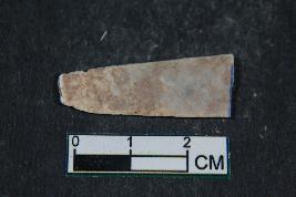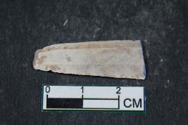 | Description / विवरण | A fragment of a blade having two dorsal ridges. It has smooth surface. |