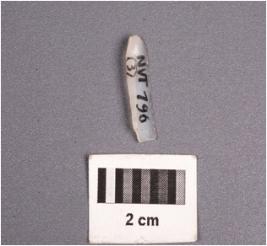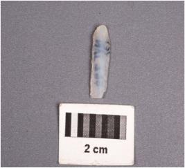 | Description / विवरण | A chalcedony blade with a mid-ridge on dorsal surface,triangular section, triangular section, diffused bulb on ventral surface, distal end broken and use-wear marks along the cutting edges. |