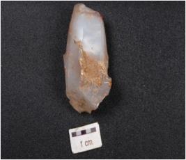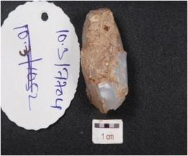| Description / विवरण | A chalcedony core, flake section on surface. |