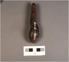 | Description / विवरण | Iron nail with head and shaft with pointed end. Corroded surface. |