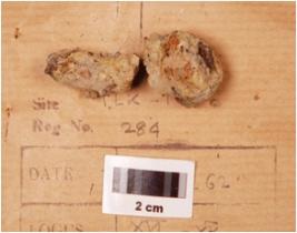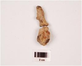 | Description / विवरण | A fragment iron nail, rusted and uneven surface bulging top and pointed end and broken into two pieces. |