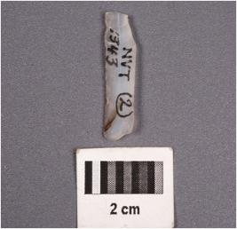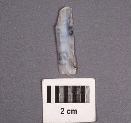 | Description / विवरण | A blace made on a chalcedony blade with two ridges on dorsal surface, prepared platform, use-wear marks along the cutting edges and distal end broken. |
