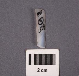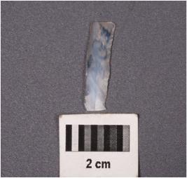 | Description / विवरण | A fragment of a parallel sided blade with a ridge on dorsal surface, broken along both proximal and distal end, use-wear marks along the cutting edges. |