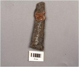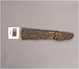 | Description / विवरण | Fragment of an iron chisel with a flat top and a sharp tip-surface in rough and chemically treated is jont. |