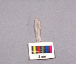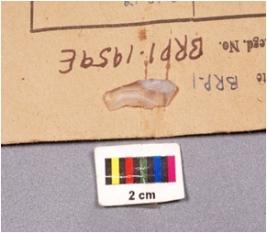 | Description / विवरण | Blade with a ridge on dorsal side, diffused bulb on ventral side, use-wear marks along the cutting edges and distal end broken. |