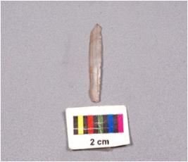 | Description / विवरण | Parallel sided blade with two ridge on dorsal side, diffused bulb on ventral side, use-wear marks along the cutting edges and distal end broken. |