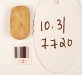 | Description / विवरण | A small pebble made on quartzite stone, rectangular shaped and rough surface. C |