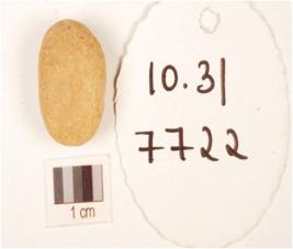 | Description / विवरण | A small pebble made on quartzite stone, oval shaped and rough surface. |