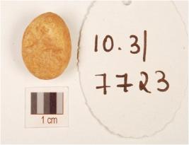 | Description / विवरण | A small pebble made on quartzite stone, uneven shaped and rough surface. |