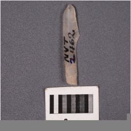 | Description / विवरण | A parallel sided microlithic blade, made on chalcedony with a mid-ridge on the dorsal side, prepared platform with prominent bulb on the ventral side, use-ware marks on the cutting edges, partly broken. Triangular in section. |