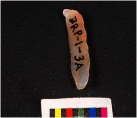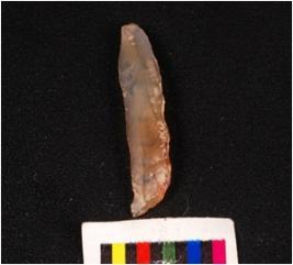 | Description / विवरण | Parallel sided blade with a ridge on dorsal surface, diffuse bulb on ventral surface, detouched from prepare core, core given heat treatment, use-wear marks along working edge. |