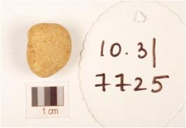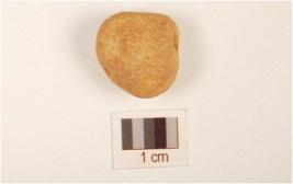 | Description / विवरण | A small pebble made on quartzite stone, uneven shaped and rough surface. |