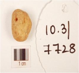 | Description / विवरण | A small pebble made on quartzite stone, uneven shaped and rough surface. |