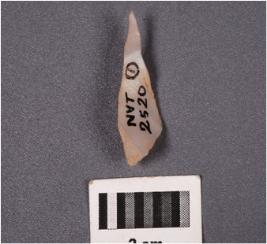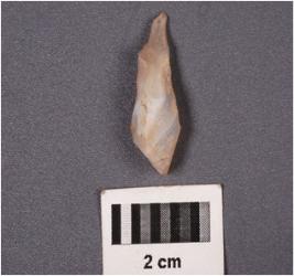 | Description / विवरण | A microlithic point made on chalcedony with use-ware makrs on cuttinge edges and a pointed end, ridge on the dorsal side. |