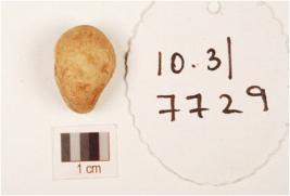 | Description / विवरण | A small pebble made on quartzite stone, uneven shaped and rough surface. |