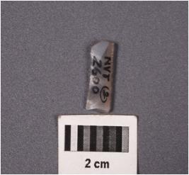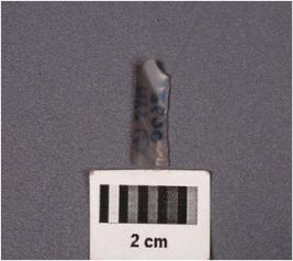 | Description / विवरण | Fragment of a parallel sided blade with double ridges on dorsal surface, broken from both proximal and distal end, use-wear marks along the cutting edges, raw material givne fire treatment. |