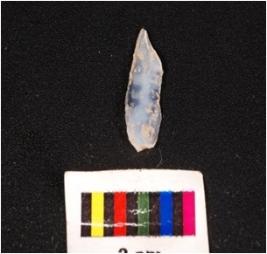 | Description / विवरण | Fragment of a parallal sided blade with ridge on dorsal surface, diffuse bulb on ventral surface, prepared platform on proximal end, broken along distal end, use-wear marks along working edge. |