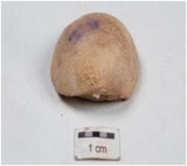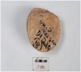 | Description / विवरण | A fragment of terracotta sling ball, smooth surface, well baked and surface was treated with wash in dull red colour. |
