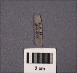 | Description / विवरण | Fragment of a blade with a ridge on dorsal surface, broken proximal end, intact distal end, use-wear marks along cutting edges. |
